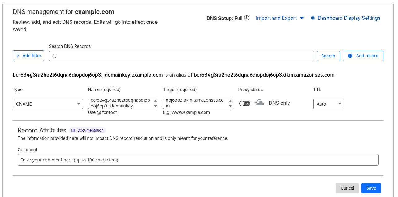 When adding a custom domain for email sending, multiple records are required to be added.